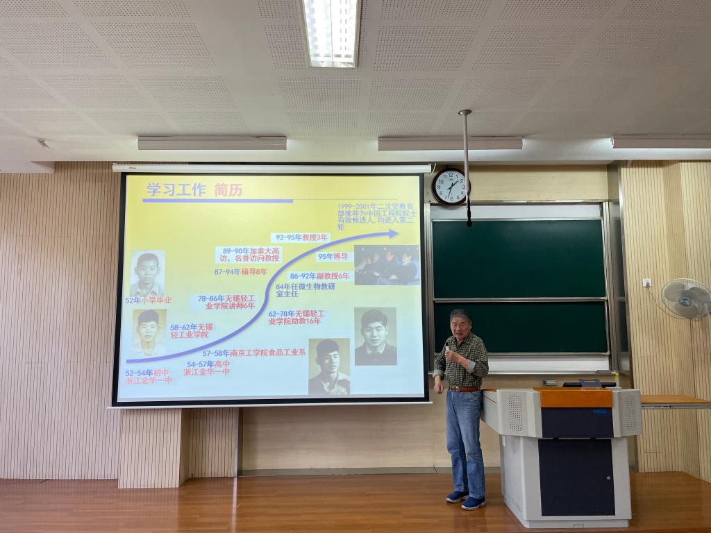 随后,诸葛老师向同学们回顾了自己开展科学研究历程。他以创新典范丁耀坤前辈为榜样,培育终身从教情怀,在改革开放前十年开创了工业微生物育种新篇章,并且紧跟科技发展前沿,创新工业微生物育种成果。诸葛老师以自身艰苦创业的经历激励员工们要有团结奋斗、与时俱进的时代精神,在学习和工作中培养会做、会写、会说的重要能力。