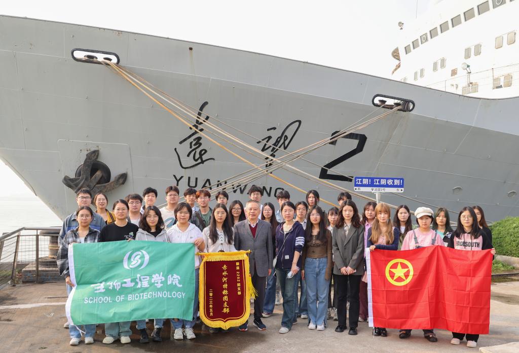青年学·沉浸式学习体验。4月23日,酿酒2202赤水河特称团支部走进全国科普教育基地、江苏省国防教育基地——江阴天华军体博物馆,80多万件藏品、10多个主题展区,诉说着过往的峥嵘岁月,激荡起同学们浓厚的爱国之情。同学们登上远望2号测量船,探秘国之重器,参观驾驶室、海图室、船长起居室等,观察各种测控仪器、救生船艇设备,深切感受“远望精神”,体悟科技自立自强是国家强盛之基、安全之要。