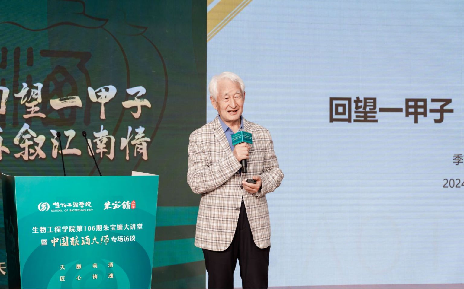 从青葱少年到耄耋老人,从校园学子到酿酒泰斗,季克良先生作《回望一甲子,再叙江南情》专题讲座。讲座中,季克良从初到茅台谈起,即使是艰苦的环境,他努力学习,不断地归纳分析总结。面对产品质量提高,他提出9点经验、10条措施和10条不同工艺。作为首届“中国酿酒大师”,季克良表示,用科学知识诠释工艺是十分必要的。他以茅台工艺为例,进一步阐述了用科学知识解决生产过程中的问题、提出科学论点、开发新产品和指导发展。最后,季克良对母校表示感谢,对在座的师生们提出殷切期待。