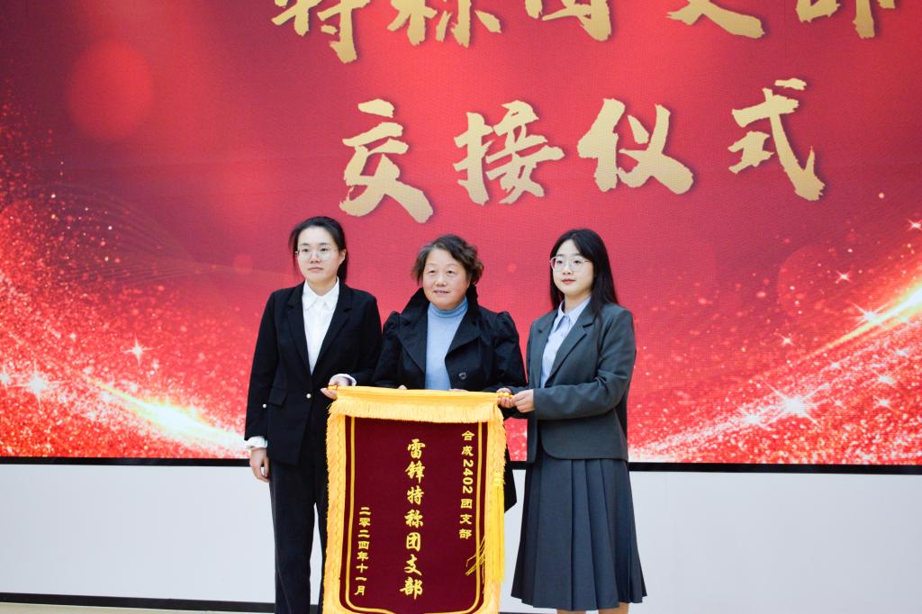 随后,现场开展了特称团支部交接仪式。由帅桂兰老师授旗,“雷锋特称团支部”从酿酒2102团支部交接至合成2402团支部。酿酒2102团支部为五星级团支部,获PA视讯官方网站“五四红旗团支部”荣誉称号,支部“样板志愿服务队”事迹获中国青年网报道。合成2402团支部将传承支部建设优良传统,积极做好表率,引领和激励团员青年书写奋进有为的青春华章。