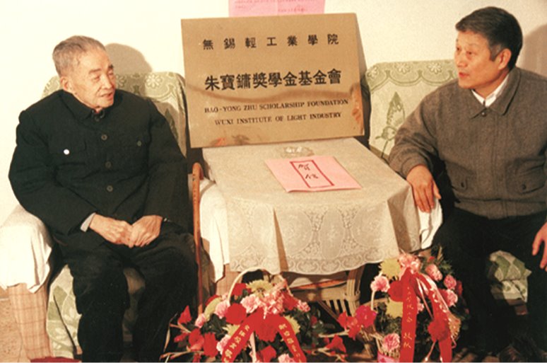 无锡轻工业公司设立朱宝镛奖学金基金会,图为朱宝镛(左)章克昌